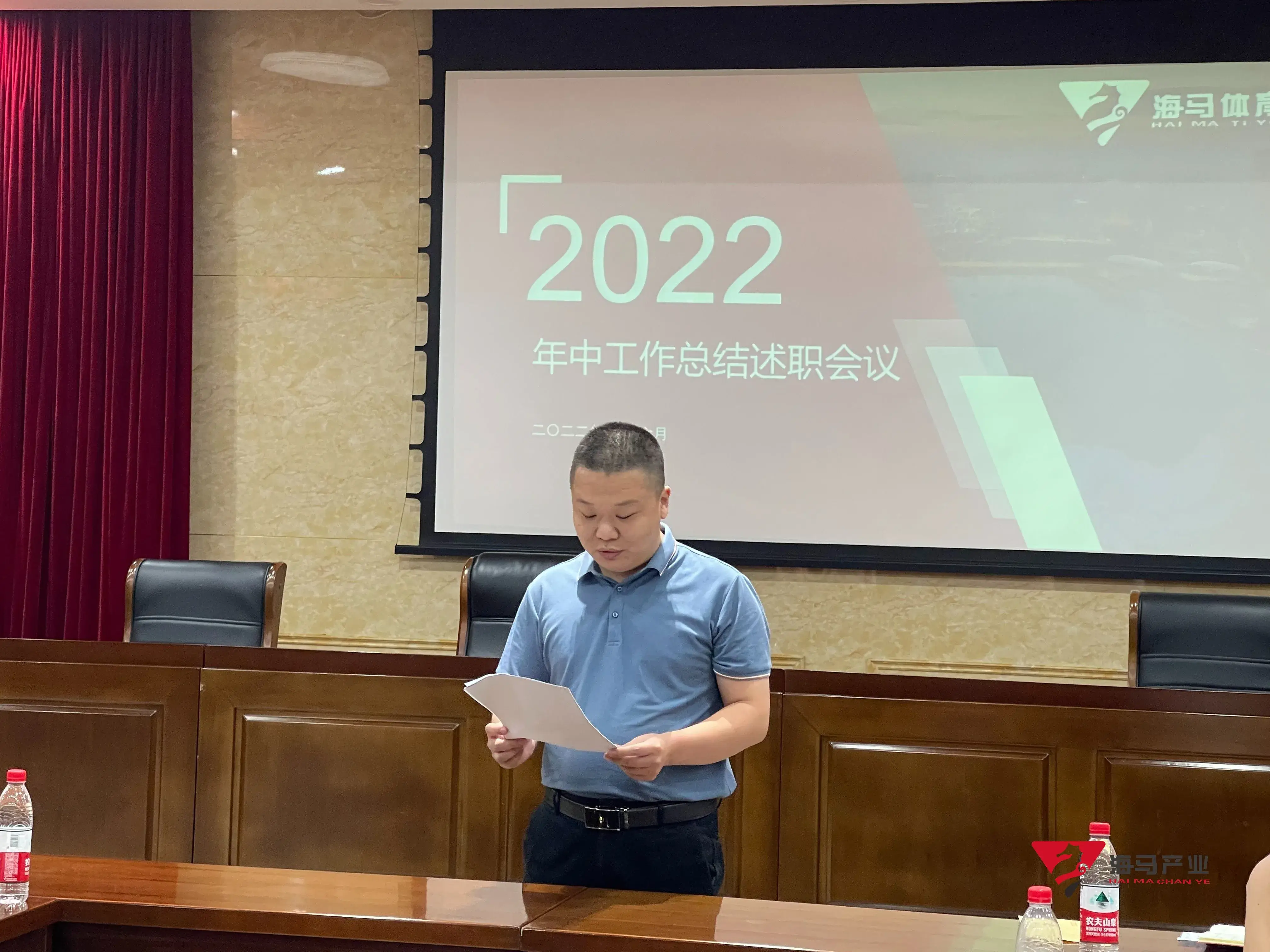 2022年6月29日下午,j9九游会文化产业集团在山东省体育中心二楼会议室召开年中工作总结述职会议,会议对上半年工作成果进行了总结汇报,并就下半年重点工作进行部署。总经理王海民出席了本次会议。会议由综合管理部负责人王永健主持。